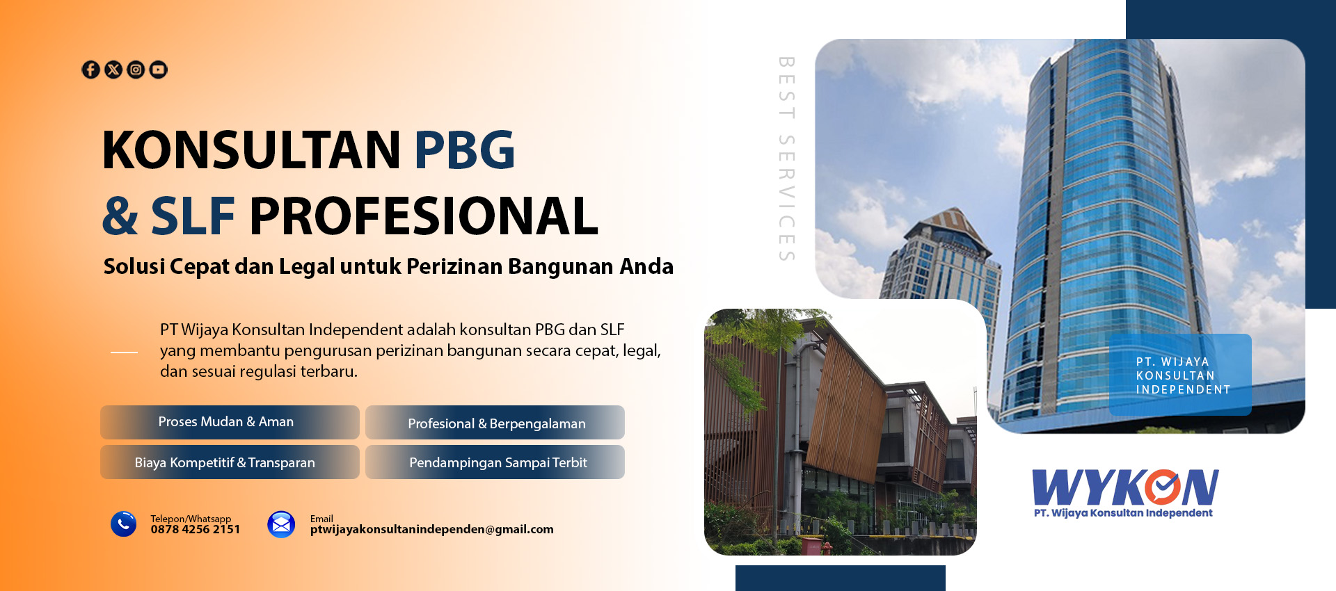 PT. Wijaya Konsultan Independent juga bergerak dibidang jasa Kajian Teknis Kelaikan Fungsi Bangunan Gedung (SLF) dan Persetujuan Bangunan Gedung (PBG) baik untuk bangunan baru, bangunan eksisting maupun bangunan penambahan untuk bangunan hunian, industri, komersil dan lainnya yang diatur sesuai perundang-undangan.